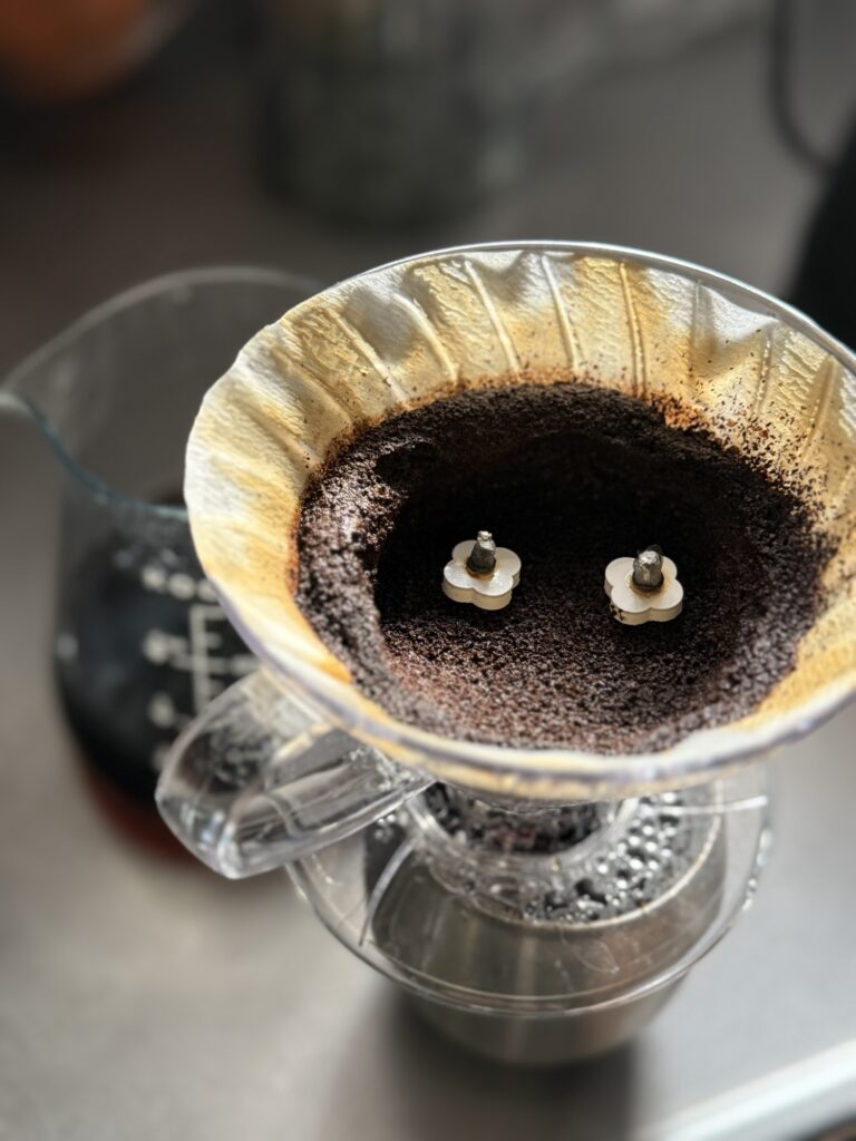 お灸した後の燃えかすは、コーヒー淹れた後のペーパーの中にいれる。